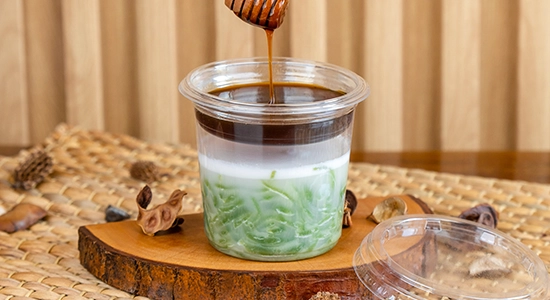 Minuman tradisional segar ini sering kali disajikan dalam kantong plastik atau gelas sederhana. Namun, dengan RYC, cendol bisa tampil lebih eksklusif. Gula merah bisa ditempatkan di dalam inner cup, sehingga konsumen dapat mengatur sendiri tingkat kemanisan minuman. Sementara itu, cendol dan santan tetap berada di cup utama. Cara ini membuat produk lebih praktis sekaligus meningkatkan value brand.